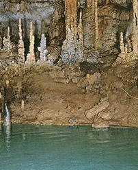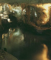 The caverns of Jeita Grotto, Mount Lebanon are on two levels: the lower caverns are visited by boat over a subterranean lake 2000 ft (623 meters) long, while the dry upper gallery can be seen on foot. These caves and galleries are known to man since Paleolithic times. The action of water has created cathedral-like vaults beneath the wooded hills of Mount Lebanon forming magnificent caverns. The Lebanese speleologists have penetrated about 4.5 mils (7 km) from the entry point of the grotto to the far end of the underground river and about 1.3 Mile (2.2 km) of the upper galleries.