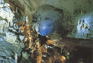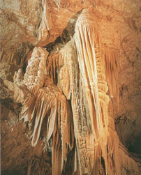 The caverns of Jeita Grotto, Mount Lebanon are on two levels: the lower caverns are visited by boat over a subterranean lake 2000 ft (623 meters) long, while the dry upper gallery can be seen on foot. These caves and galleries are known to man since Paleolithic times. The action of water has created cathedral-like vaults beneath the wooded hills of Mount Lebanon forming magnificent caverns. The Lebanese speleologists have penetrated about 4.5 mils (7 km) from the entry point of the grotto to the far end of the underground river and about 1.3 Mile (2.2 km) of the upper galleries.